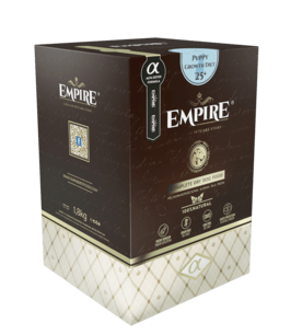 PUPPY GROWTH DIET ist ein 100% natürliches, vollständiges Ernährungsprogramm, das speziell für Welpen aller kleiner Rassen bis 25 kg entwickelt wurde. Seine besondere Zusammensetzung liefert alle notwendigen Stoffen und unterstützt den Organismus und das Immunsystem des Hundes.Wir empfehlen, PUPPY GROWTH DIET gemäß dem EMPIRE-Ernährungsplan bis einem Alter von 12 Monaten zu füttern. Das Futter ist auch für trächtige und stillende Hündinnen geeignet.