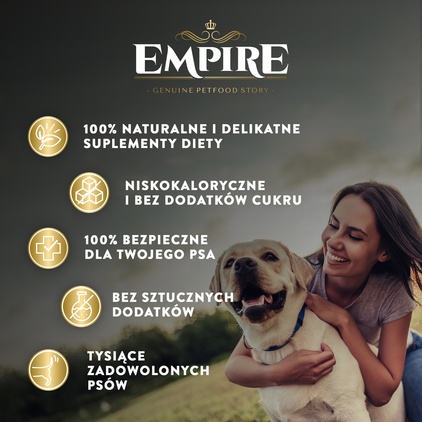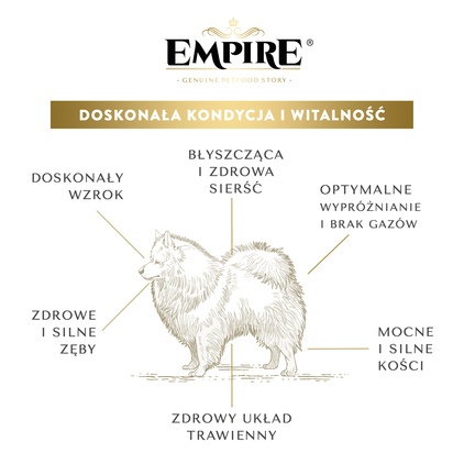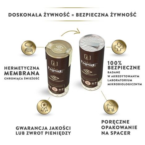W produktach EMPIRE nie znajdziesz glutenu ani składników modyfikowanych genetycznie. Karmy EMPIRE są w 100% naturalne.